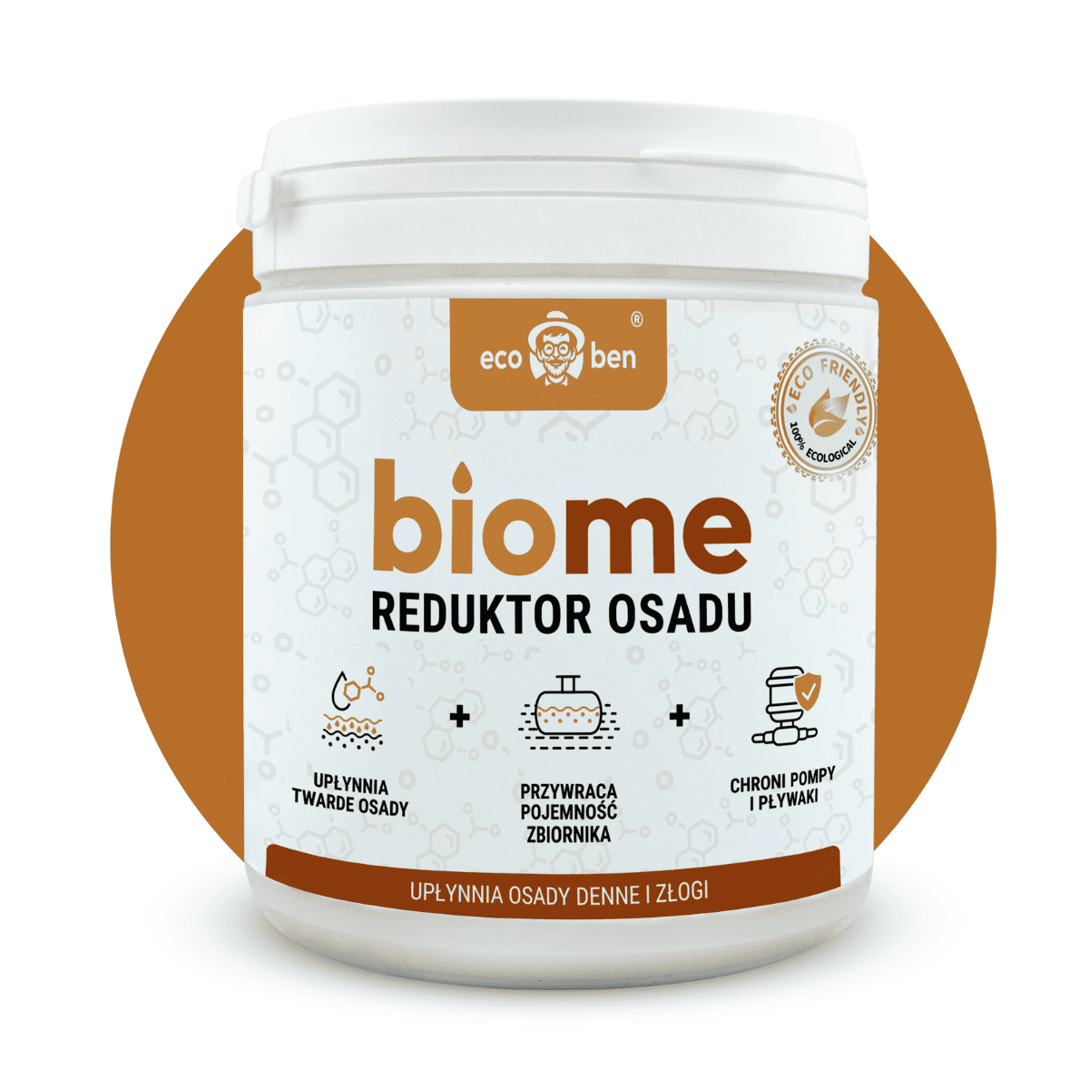 - Redukcja warstwy osadu – bakterie i 5 enzymów (amylaza, dwie proteazy, celulaza, lipaza) rozkładają materię organiczną w szambie i oczyszczalni